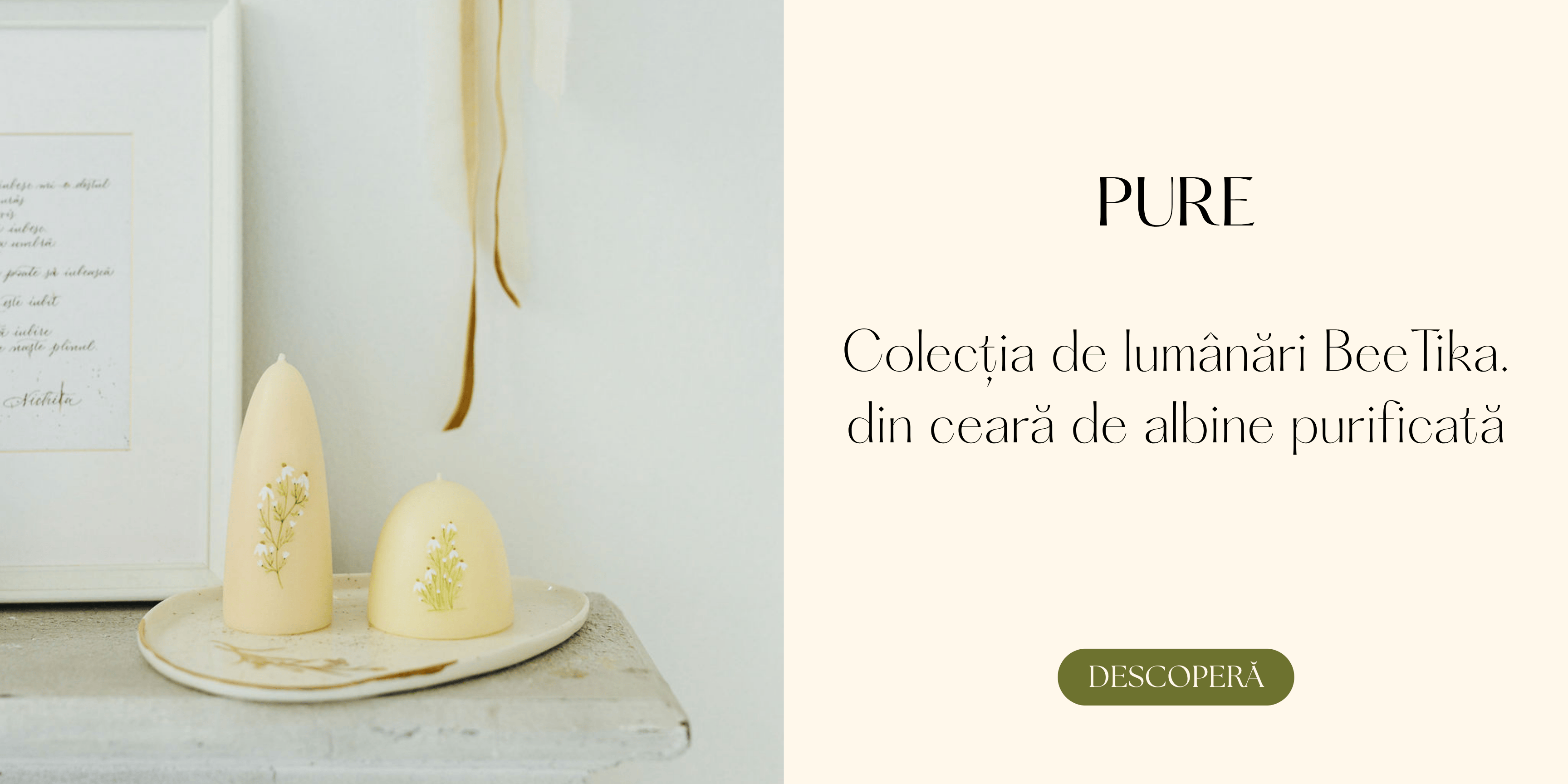 Lumânări din ceară de albine naturală purificată, pictate, pentru sfeșnic - Pachet 2 bucăți