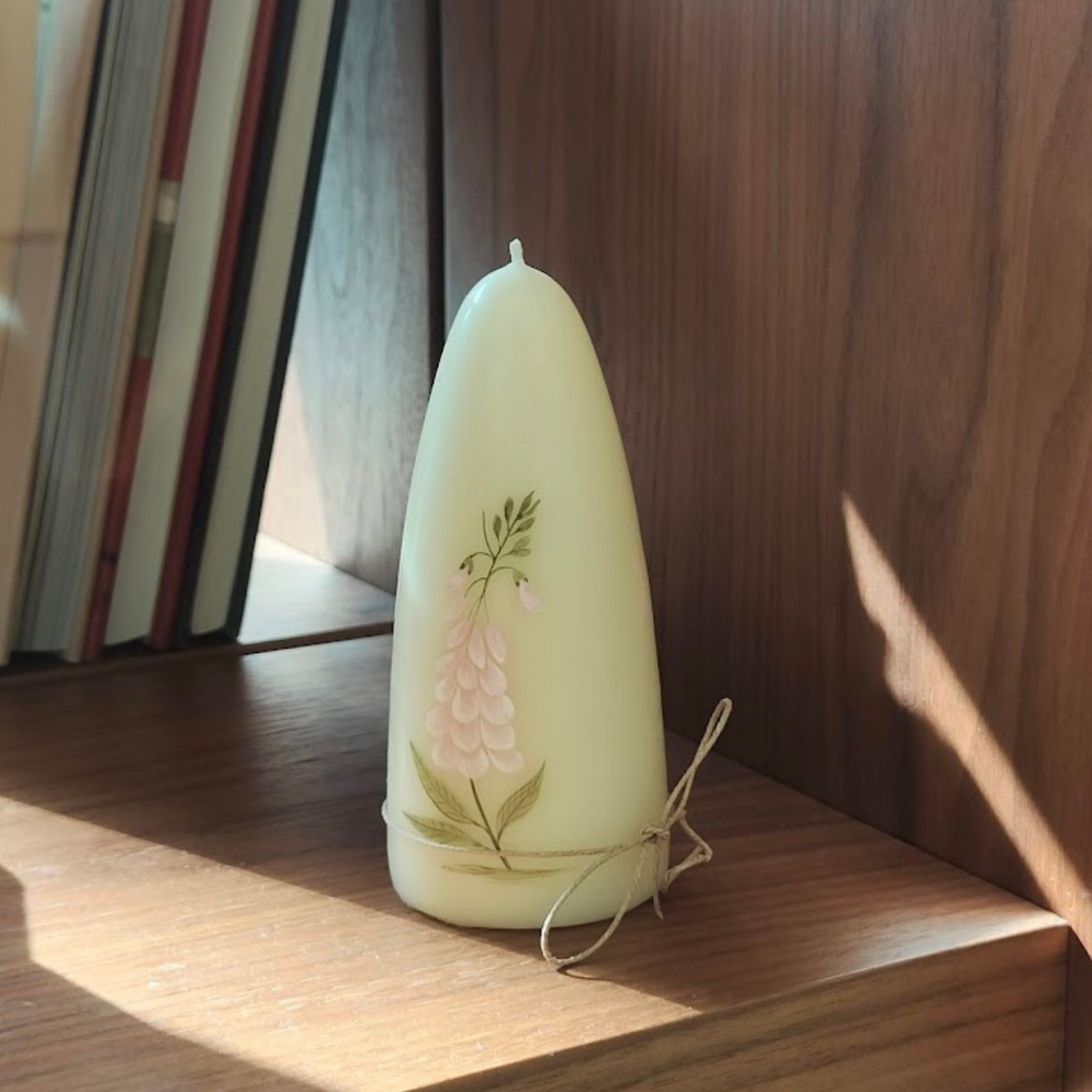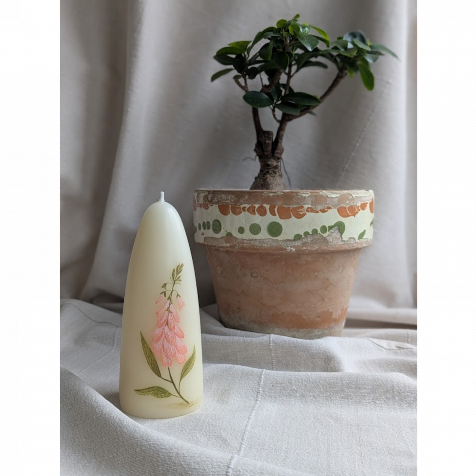 O lumânare delicată, realizată manual din ceară de albine purificată și subtil infuzată cu note citrice și florale, din uleiuri de parfum. Cu inflorescențele sale înalte și colorate ce aduc o notă de mister și eleganță oricărei grădini, florile de degețel pictate manual, transformă această lumânare într-o piesă unică. Perfectă pentru a fi oferită cadou sau pentru a înfrumuseța un colț special al casei, această lumânare simbolizează frumusețea și puritatea naturii.