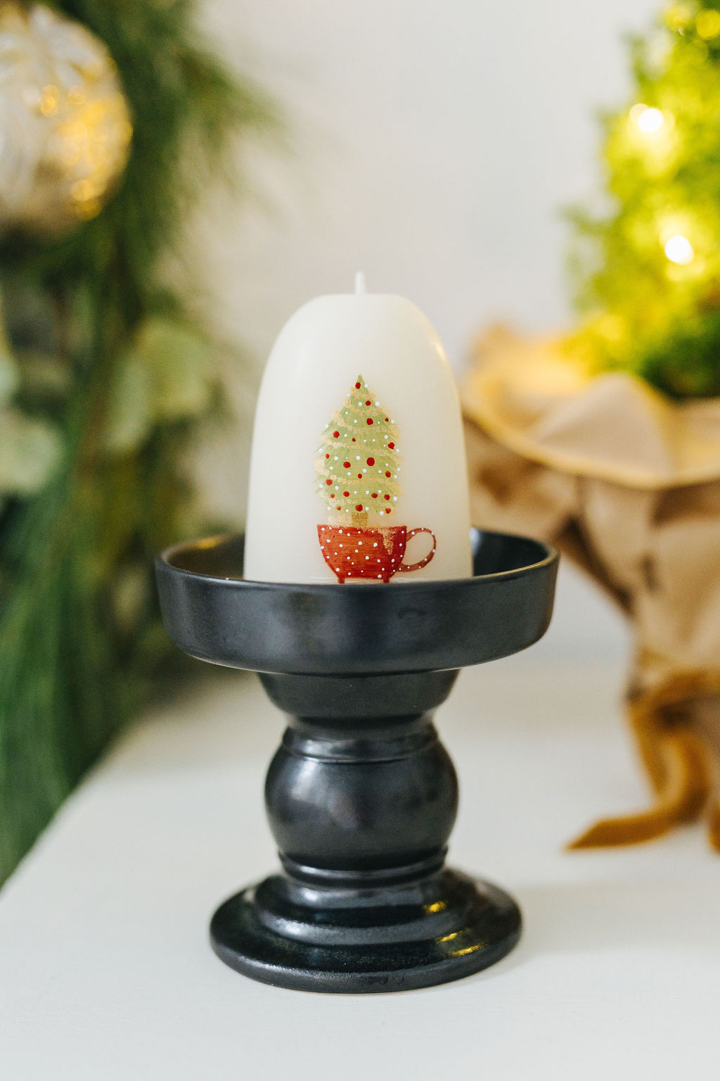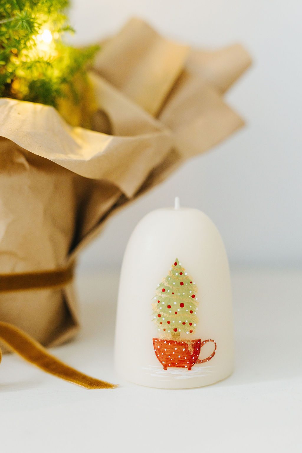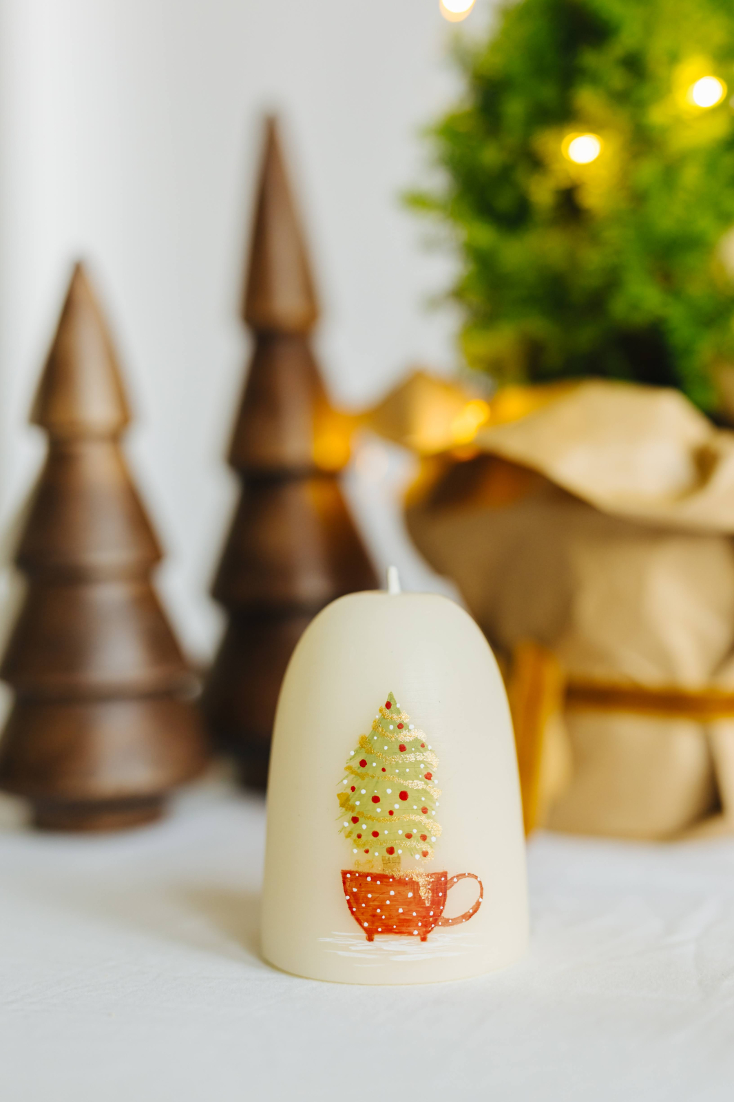 Această lumânare, realizată manual și pictată cu grijă, te întâmpină cu imaginea unui brăduț așezat într-o ceașcă – un simbol al bucuriei simple și al grijii pentru detalii. Îți aduce aminte de momentele în care familia se adună împreună, împodobind bradul și creând mici ritualuri pline de emoție. Nu e magia agitată a orașului, ci acea căldură intimă care te face să te simți acasă, în fiecare sărbătoare.