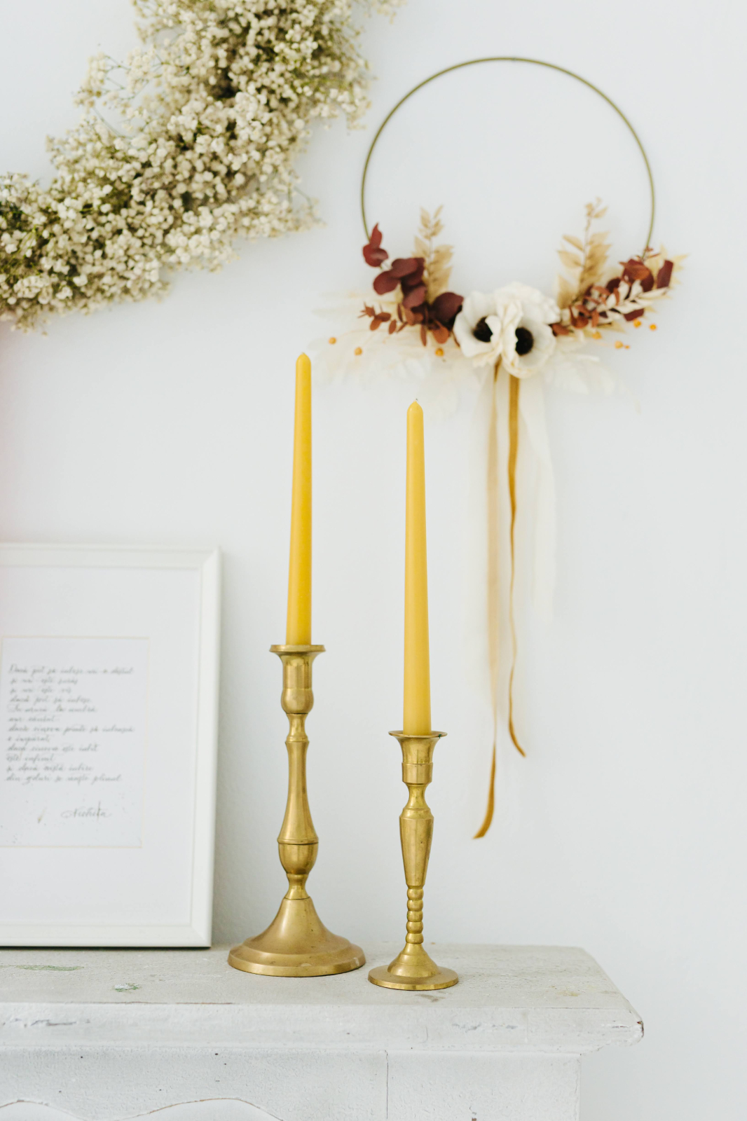 Fiecare lumânare este realizată manual. Vă rugăm să țineți cont că nuanțele de galben pot varia ușor de la o lumânare la alta, în funcție de lotul de ceară utilizat. Aceste mici diferențe fac parte din unicitatea fiecărui produs.